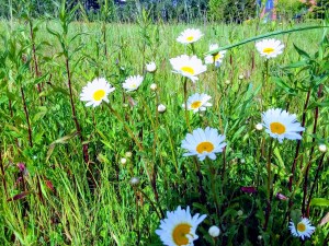 White daisies sway in